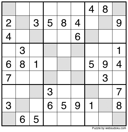 Instrucciones: Complete Sudoku-X como un sudoku normal, pero sin que haya repeticiones en las diagonales sombreadas.